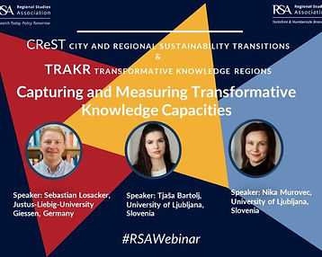Dr. Sebastian Losacker gave a presentation on geographical sequence analysis at the webinar "Capturing and Measuring Transformative Knowledge Capacities" of the Research Network on Transformative Knowledge Regions (TRAKR) of the Regional Studies Association.
